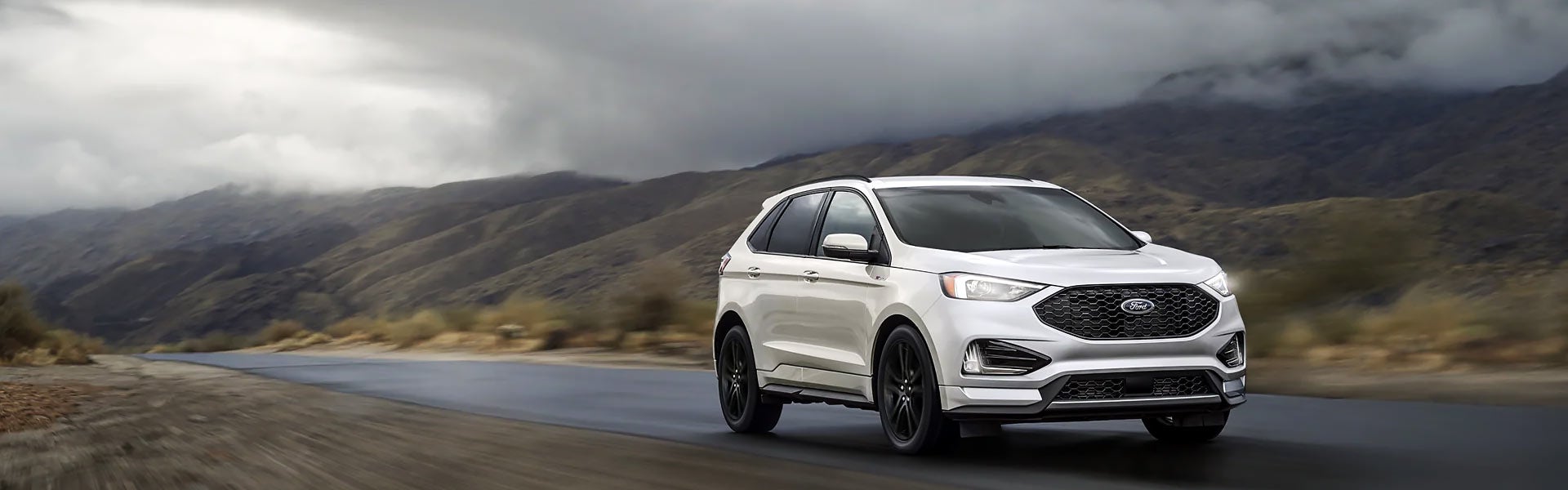 At the top of the lineup, the Edge ST trim includes 20-inch black painted wheels, a sport suspension, black and body-colored exterior trim, leather and faux-suede-upholstery, front sport seats with silver stitching, and a Bang & Olufsen stereo system with 12 speakers.