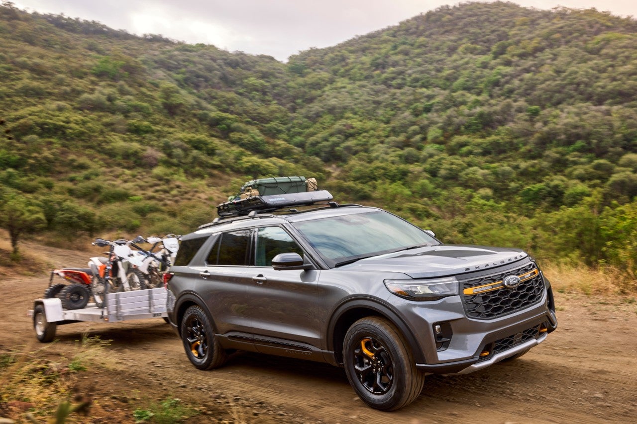 For 2026, the Ford Explorer gets a new Tremor trim level. This off-road Explorer gets exclusive 18-inch wheels, all-terrain tires, a limited-slip rear differential, and a one-inch lifted suspension.